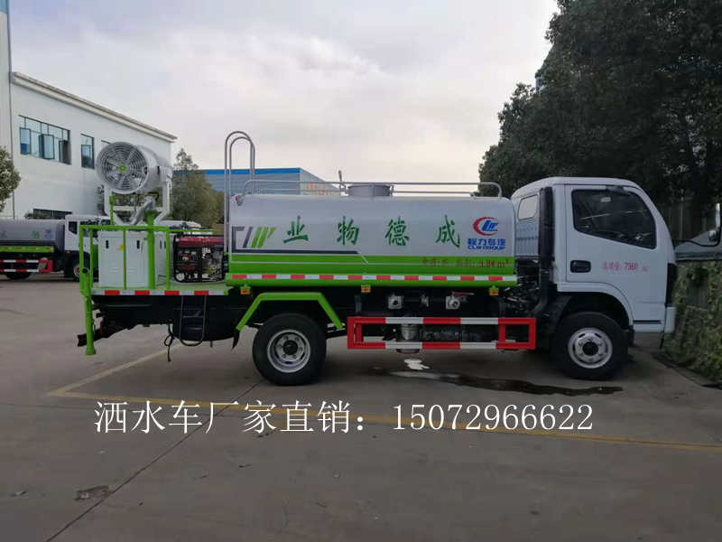 這臺(tái)5方綠化噴灑車采用錫柴110馬力發(fā)動(dòng)機(jī),5檔變速箱,700R16鋼絲胎,罐體容積5方,前沖,后灑,側(cè)噴,綠化水炮,后置一個(gè)霧炮,噴霧距離可達(dá)30米。罐體上按客戶要求噴涂了“成德物業(yè)”四個(gè)字。